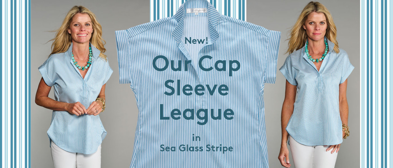The Cap Sleeve League in Navy Awning Stripe